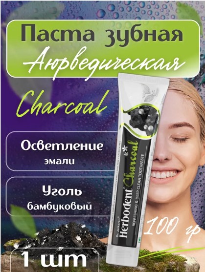 Herbodent Charcoal, Хербодент c активированным углем, 100гр